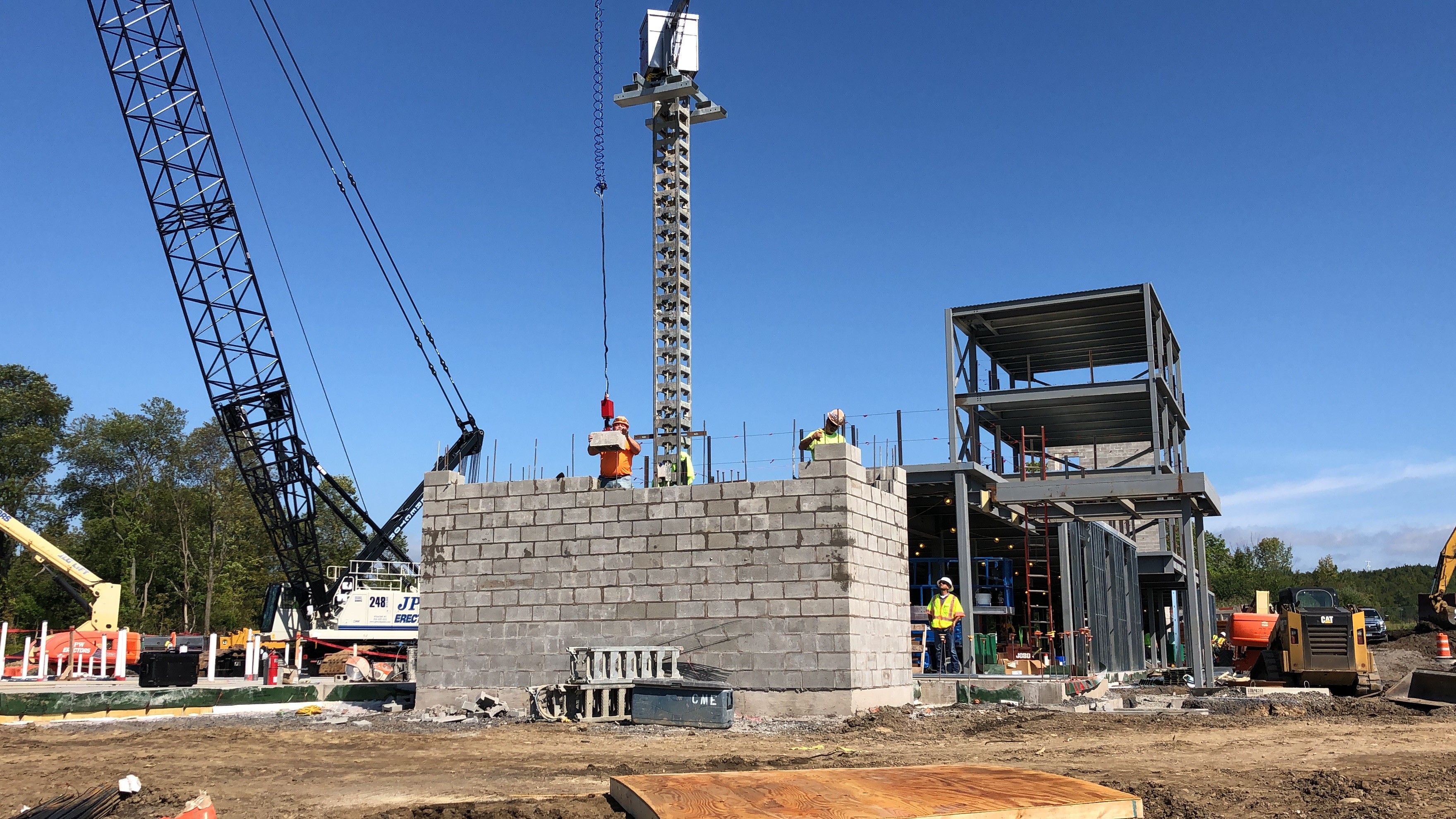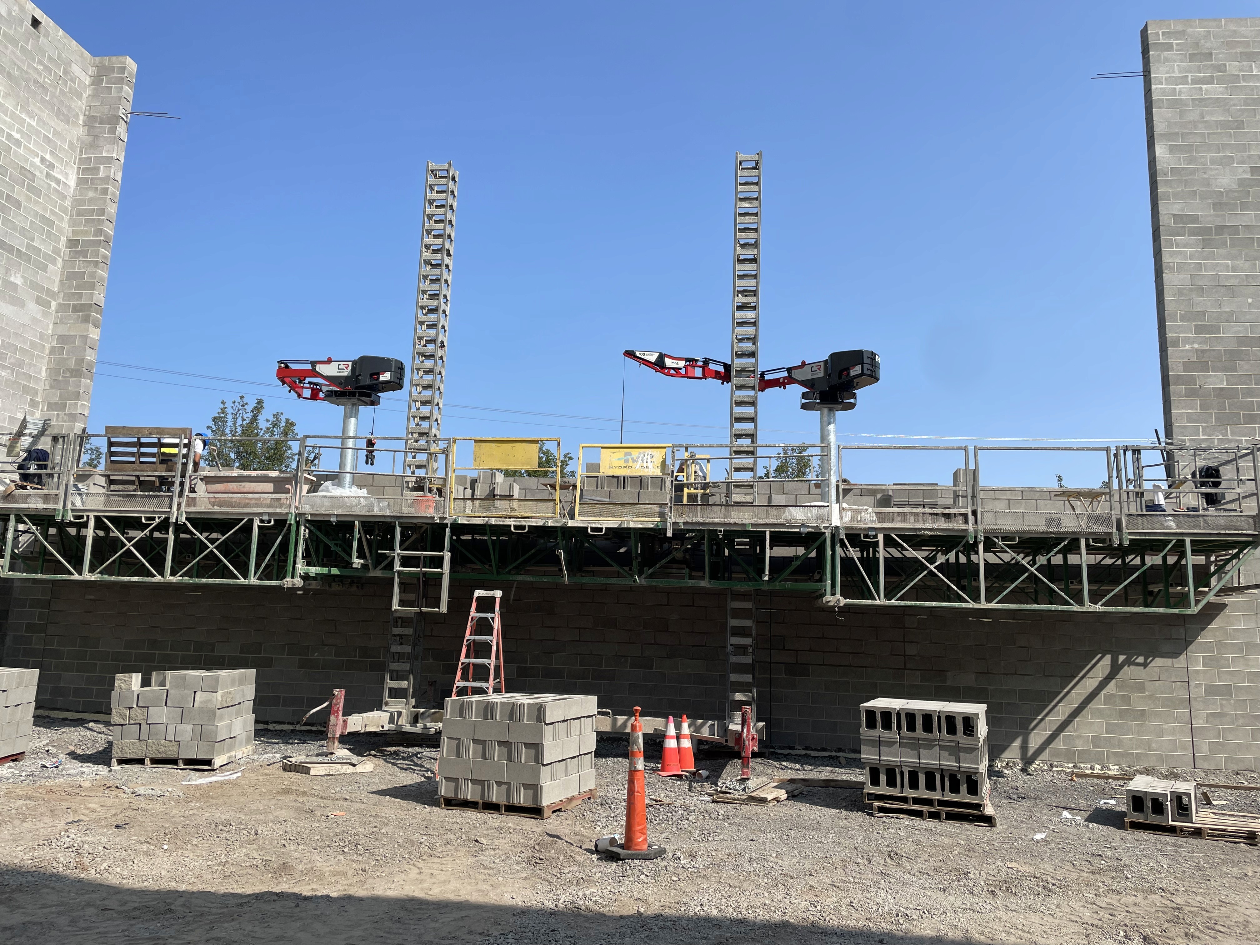 Large and small mason contractors working on commercial projects
